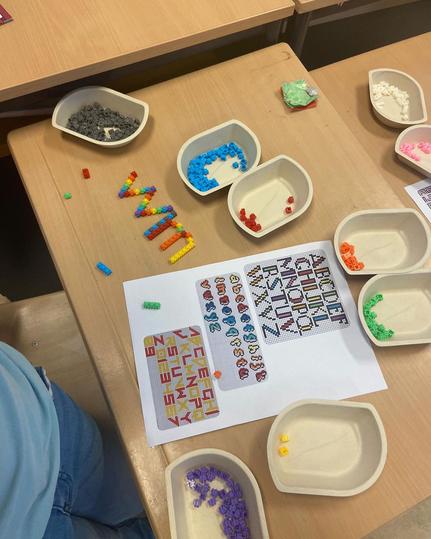 Sommigen kozen een regenboog aan kleuren. Anderen gingen voor hun lievelingskleur. Er waren ook kids die om en om kleuren gebruikten. Sommige namen kostten wat meer tijd. Want ja, namen verschillen natuurlijk in lengte.